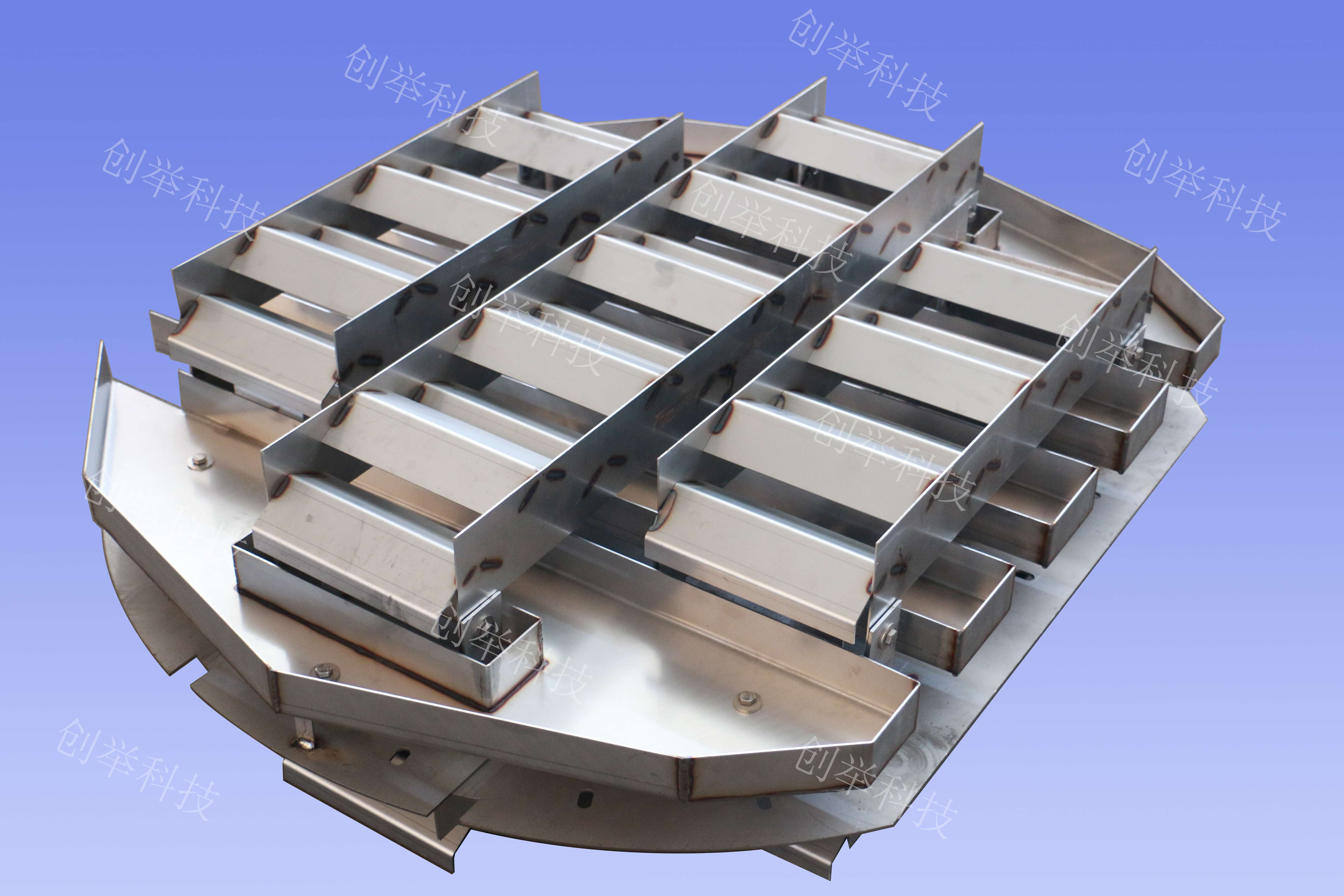 (4)此再分布器同樣適用于易堵物系,與傳統(tǒng)再分布器相比不再設(shè)布液孔、溢流孔,從而使抗堵性能大幅度提升。
