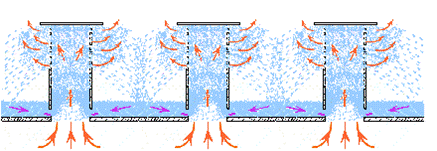 噴射態(tài)塔板利用高速流動(dòng)的氣相為連續(xù)相,將塔板上的液相分散為小液滴進(jìn)行汽液接觸傳質(zhì),避免氣泡的產(chǎn)生。改變了傳統(tǒng)塔板液相為連續(xù)相,氣相為分散相,已形成泡沫的接觸形態(tài),從根本上避免泡沫的產(chǎn)生。