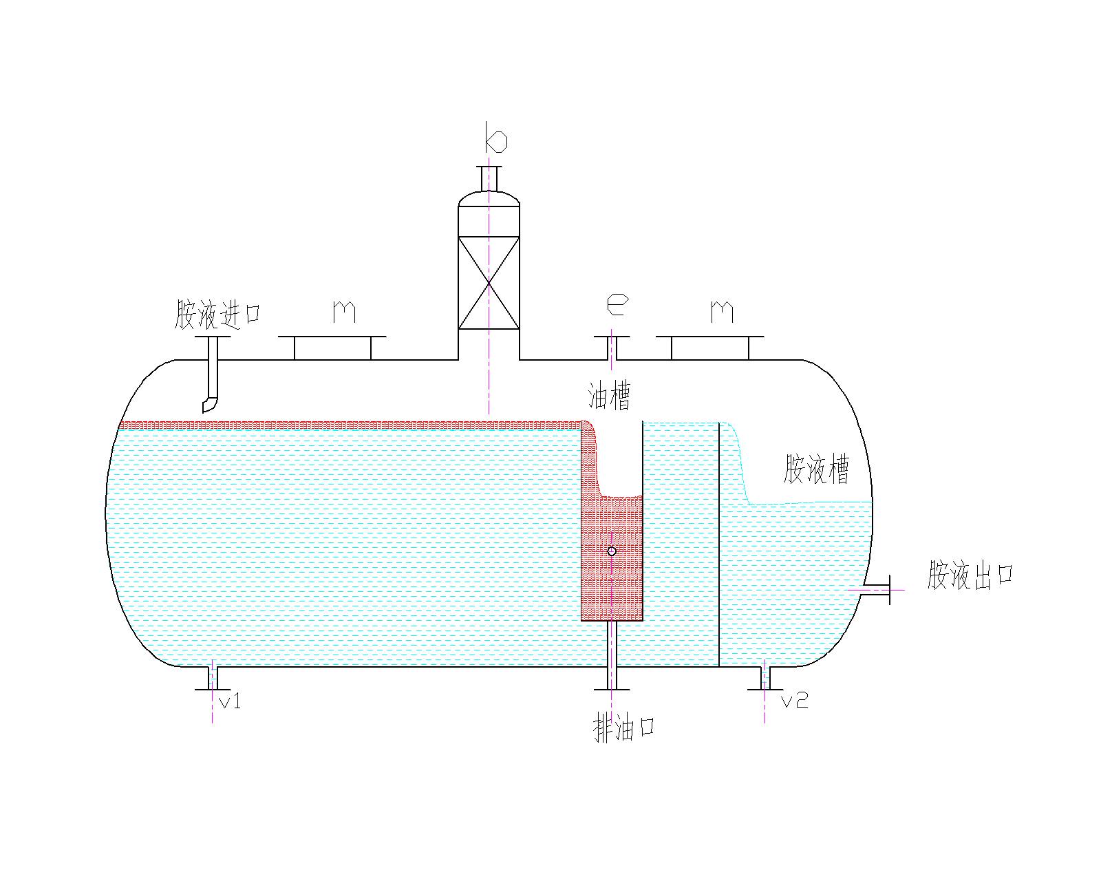 氣液混合物折返從帽罩側(cè)孔水平噴出,靠重力在塔板上部空間分離;