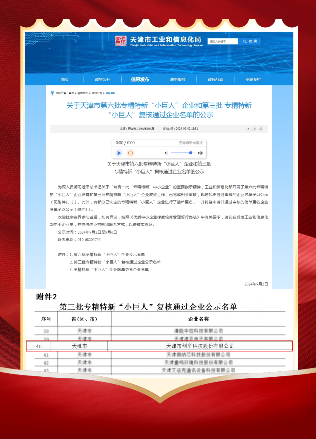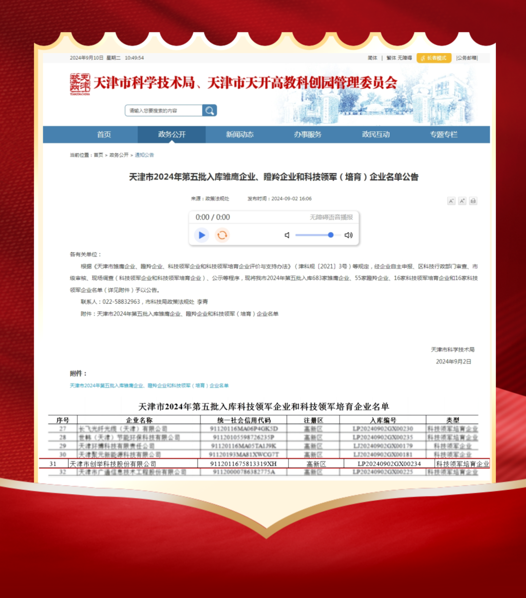 近日,天津市創舉科技股份有限公司(簡稱“創舉科技”)通過國家級專精特新“小巨人”企業復審,同時入選天津市科技領軍培育企業名單