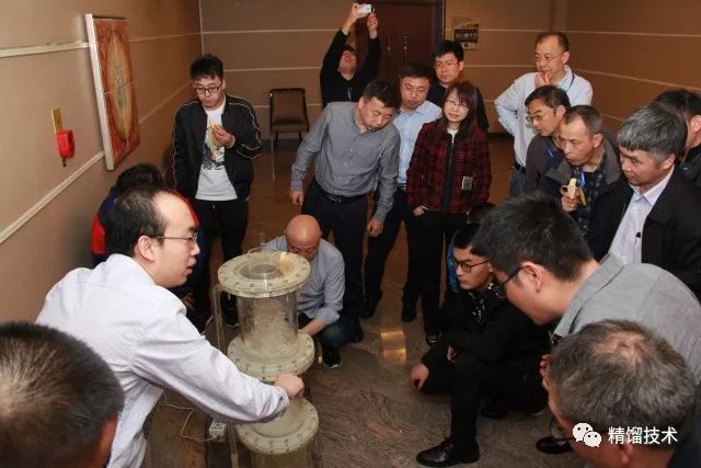 嘉賓們還觀摩了創(chuàng)舉帶來的冷模實(shí)驗(yàn)塔,對(duì)逆流系列塔板的技術(shù)有了直觀的認(rèn)識(shí)。